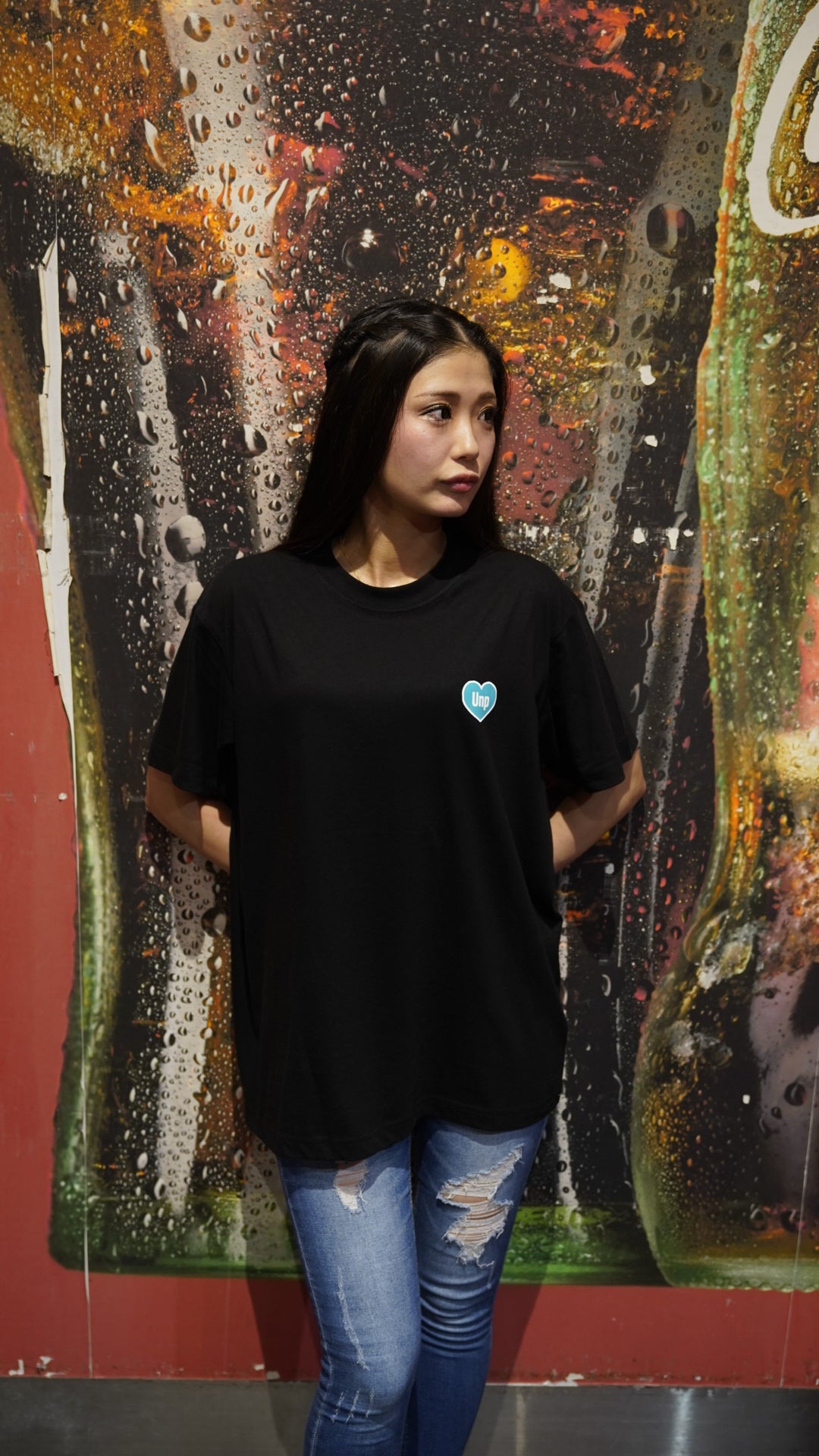 胸元にはブランド略称「Unp」をハートで表現したミニマルデザイン。