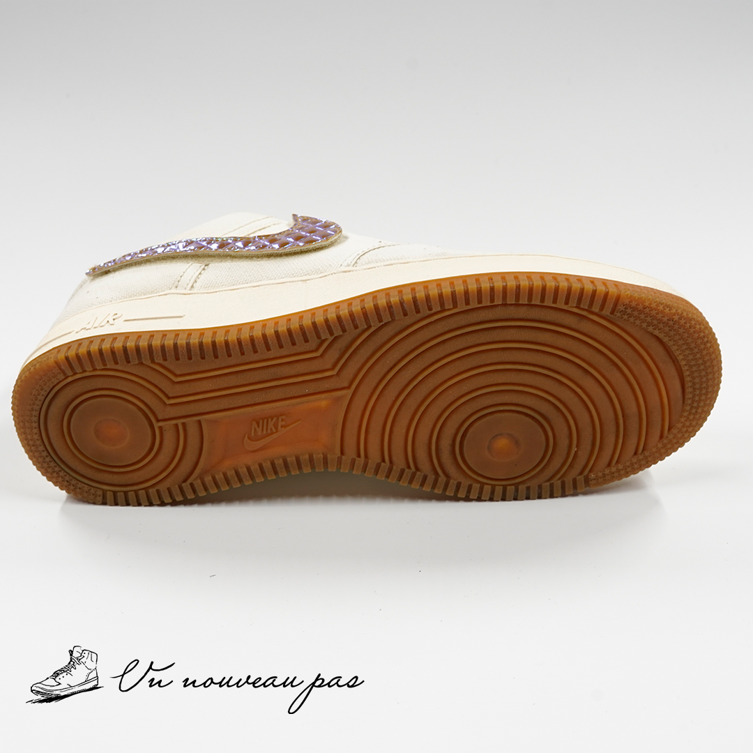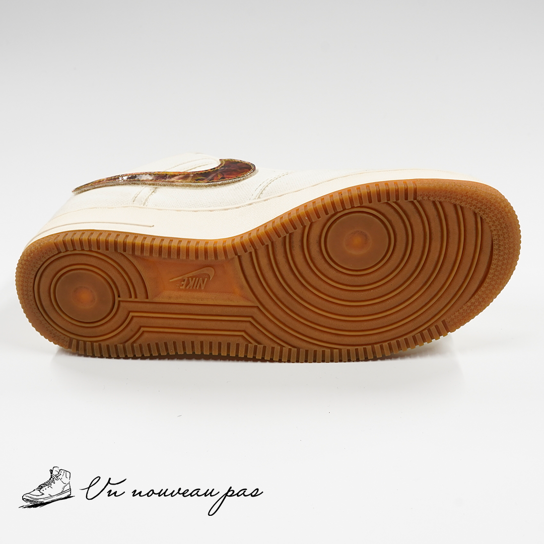 真っ白なAF1をベースにしながら、トラヴィスらしいカスタム要素を詰め込んだ、AF1史上でも特に人気の高い一足です。